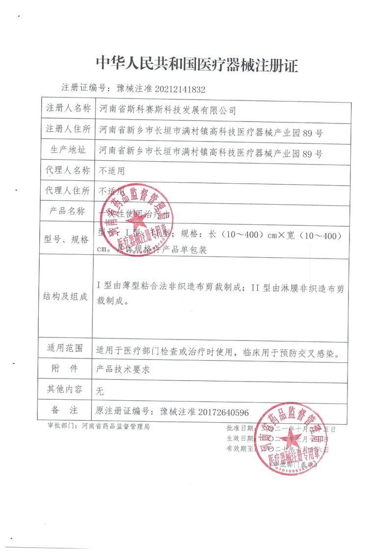 河南省斯科賽斯科技發(fā)展有限公司創(chuàng)建于 2011 年,位于“中國醫(yī)療耗材之都”- 河南省長垣縣,西臨 308 省道,南靠新菏鐵路,北依長濟高速,交通便捷,經濟發(fā)達,環(huán)境優(yōu)美。斯科賽斯積極進入醫(yī)療健康和服務領域,秉承為用戶創(chuàng)造價值的理念,專注于醫(yī)用耗材解決方案的研發(fā)和運營,并為用戶提供完善的產品解決方案;  斯科賽斯主要生產醫(yī)用麻醉系列、醫(yī)用高分子系列、醫(yī)用敷料包系列、醫(yī)用無紡布系列、醫(yī)用防護系列、醫(yī)用脫脂棉系列、生物材料制品類等七大類、100 多個品種、400 多個規(guī)格的產品。公司占地面積約 30000 平方米,建筑面積20000 平方米,擁有 10 萬級的凈化車間總面積 10000 平方米。擁有國際先進水平的生產設備和檢測儀器,技術裝備精良,檢測手段完善,為醫(yī)療行業(yè)的不斷發(fā)展進步提供保障。公司順利通過 ISO9001、ISO13485 質量管理體系認證。  斯科賽斯堅持研發(fā)高科技新產品,力爭在醫(yī)療器械關鍵領域取得技術和研發(fā)的重大突破;立足國內和國際兩個市場,逐步實現管理理念、經營機制、人力資源、技術、產品、市場等全方位對接,提高企業(yè)的核心競爭力;過去的歲月里,斯科賽斯砥礪前行,誠信務實,銳意進取,不斷創(chuàng)新,用自己的睿智和辛勞,以富有責任感的使命,在探索中追求,在追求中超越,致力于成為值得信賴的醫(yī)療用品生產企業(yè)!在未來的日子里,斯科賽斯將一如既往豪情滿懷,信心百倍,攜手并肩,執(zhí)著追求,向更高的的目標前進,鑄造新的輝煌!